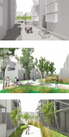 Transition entre la ville et la campagne, l’urbanisation en piles permet au site de conserver son caractère vert et son rapport au grand paysage en intensifiant les rapports avec le bâti. Il s’agit, comme le dit Adrian Geuze, de « produire la nature plutôt que de la détruire ». Le projet propose de mettre en place une interaction entre le milieu rural et le milieu urbain traditionnellement mis en opposition.