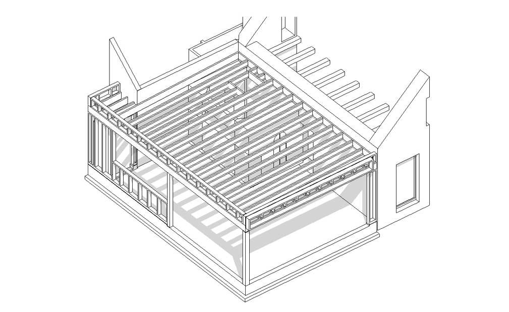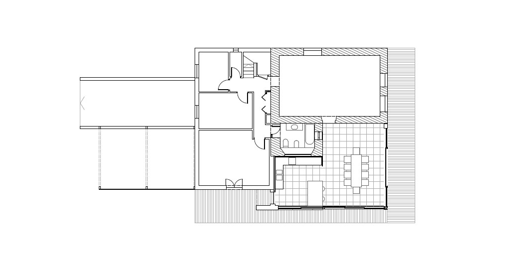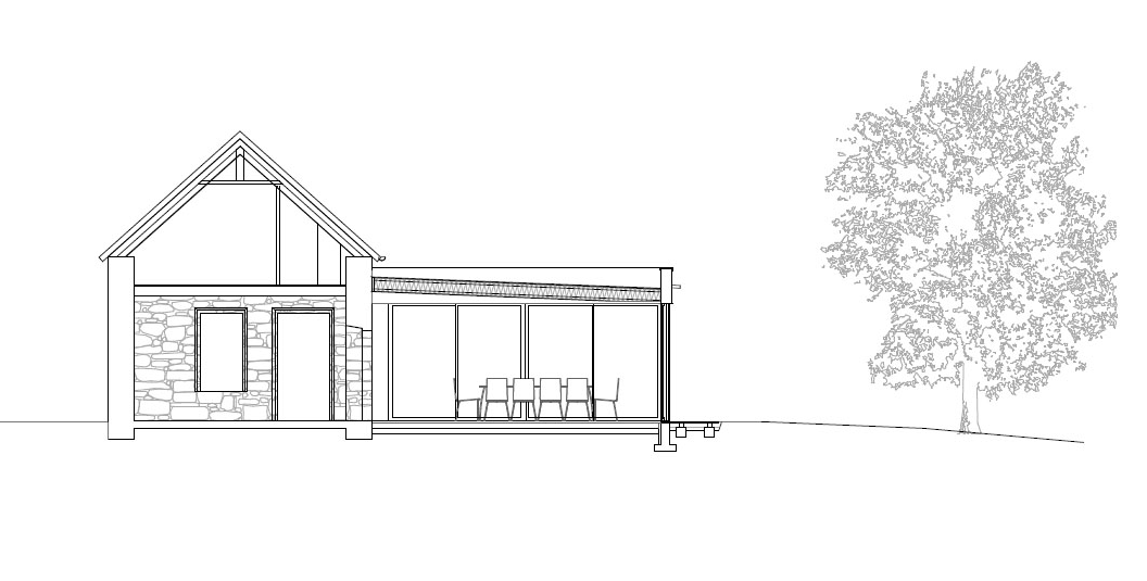Les commanditaires du projet souhaitaient étendre leur espace domestique avec un espace de convivialité tourné vers l’extérieur. Il a donc été formalisé par un volume simple et largement vitré abritant une grande cuisine familiale. Traitée en dicotomie avec la maison existante traditionnelle de façon légère, en bois habillé de feuille de zinc.